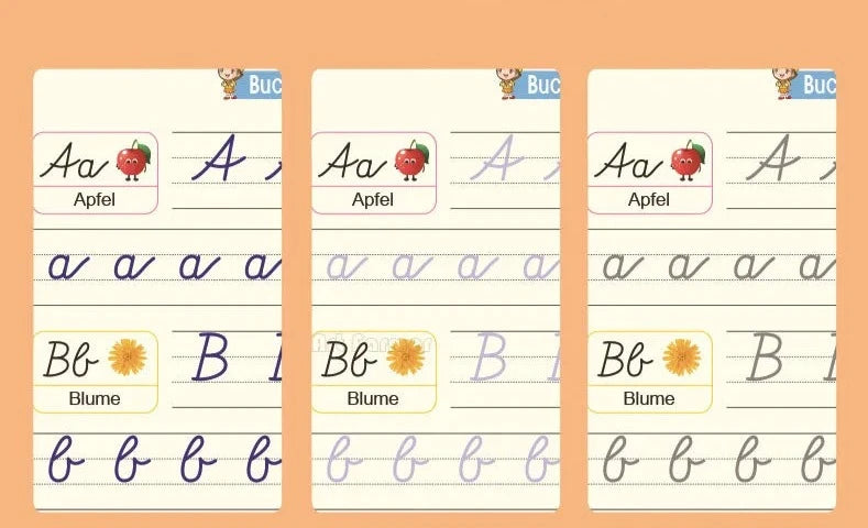 3D-Dreidimensional-Rillen-Design, diese Handschrift-Bilderbücher können das standardisierte Schreibformat vorgeben, was Spaß macht und praktisch ist. Kinder können sie im täglichen Leben verwenden, um den Spaß zu erhöhen: Diese magischen Kalligrafiebücher haben interessante grafische Kombinationen, lebendige Farben und niedliche Formen, die das Gedächtnis und das Interesse der Kinder fördern. Sie bringen ihnen viel Spaß und die Kinder können viel daraus lernen.