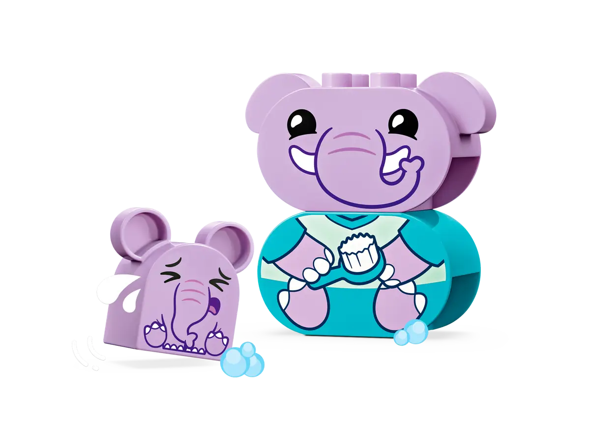 - Lernspielzeug für Kleinkinder: Das Set beinhaltet 2 Spielzeugelefanten sowie eine Toilette, ein Bad und eine Dusche aus robusten LEGO® DUPLO® Steinen und Elementen, mit denen man ganz spielerisch die tägliche Routine im Badezimmer darstellen kann